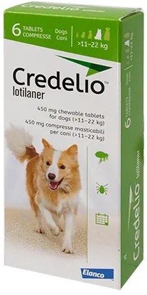 Credelio contains the ingredient, lotilaner, which is an antiparasitic drug that kills the fleas and ticks that live on your pet's body surface. Lotilaner blocks the transfer of chloride ions from passing through cell membranes, which causes uncontrolled neuromuscular activity and results in the death of fleas and ticks. Credelio starts killing fleas within 4 hours of administration and kills over 99% of fleas within 8 hours of administration. Credelio starts killing ticks* in 4 hours and 98.7% killed within 8 hours. *(Ixodes ricinus)